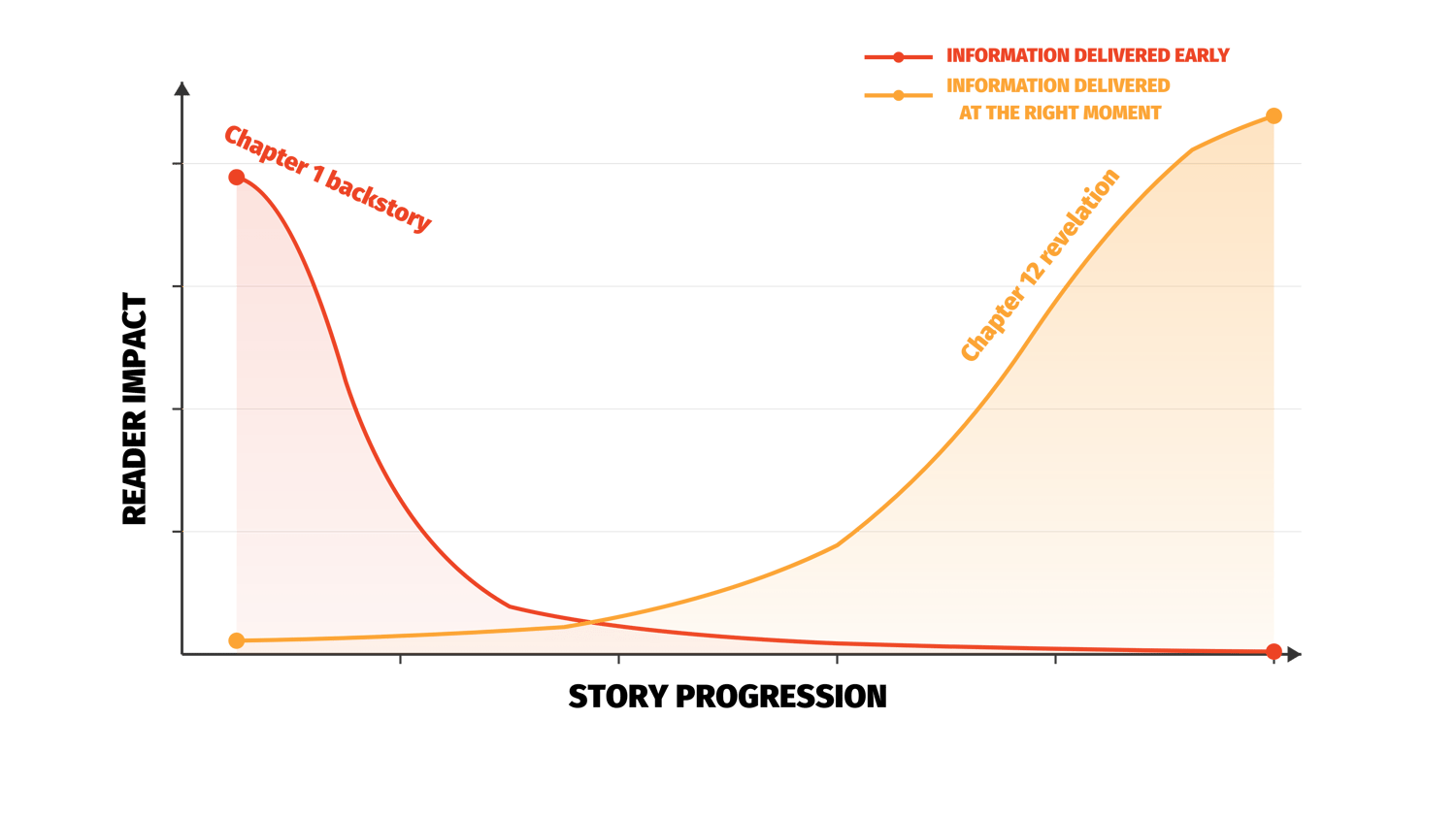 Think of it as radioactive decay. A fact about your character's childhood trauma, delivered in chapter one before the reader cares who this person is, has a half-life of about three paragraphs. That same fact, withheld until chapter twelve when the character is standing at a crossroads and the reader is begging to understand why she keeps making the same mistake, hits with the force of revelation. The information hasn't changed. The timing changed everything.